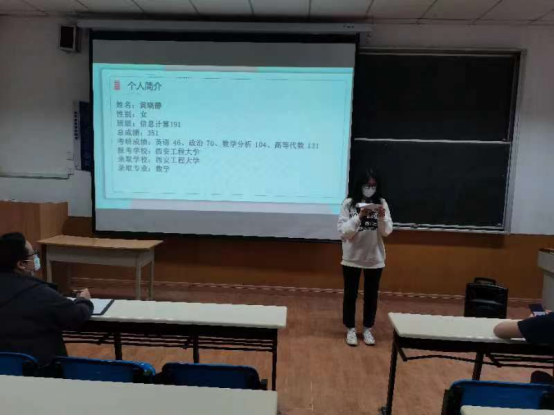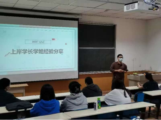 ac米兰官方网站7名2019级考研成功上岸的学长学姐分享了他们的考研经验。介绍了自身备考期间的实际状况,具体列举考研英语、政治、数学、专业课的复习重点,建议同学们积极关注时政消息,打牢考试基础;提醒同学们考研备考过程中要做好复习规划,合理制定学习计划和安排时间,合理择校;同时给在场同学分享了自己考研过程中的座右铭、小故事和备考资料,并祝大家今年12月都能如愿取得好成绩。会场上,同学们向学长学姐请教具体问题,学长学姐一一作出解答。