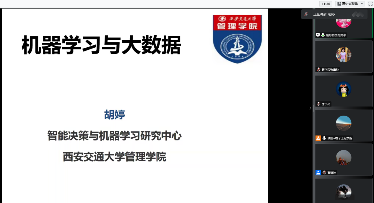 为进一步推动信息与计算科学专业发展,加强教师学术交流,2022年11月25日下午15点,ac米兰官方网站邀请西安交通大学经济管ac米兰官方网站胡婷教授为米兰官网师生做了题为“机器学习与大数据”的学术报告,报告由党总支书记李小光主持,共有200多人聆听了报告。
