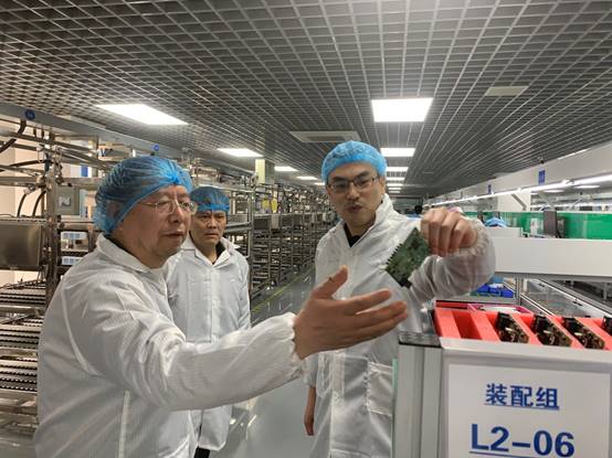 随后,唐欣总经理陪同岳忠玉、杨俊清一行参观了长安计算的生产线,对鲲鹏产品规划、鲲鹏920处理器、PR210系列处理器、PT620K高性能处理器等进行深入了解。