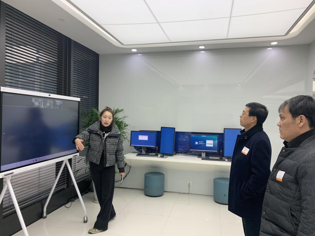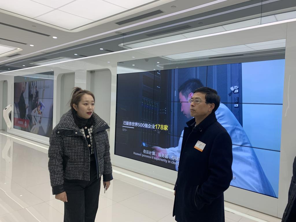 华为政企教育行业相关负责人李鲁熙介绍了华为技术有限公司主营业务,从事通信产品的研究、开发、生产和销售,自主研究开发的产品覆盖有线通信、无线通信和数据通信三大领域等,宋文学参观了华为自主研发的开发程控交换机、传输设备、数据通信设备、宽带多媒体设备、电源、无线通信设备、微电子产品、系统集成工程、计算机及配套设备、终端设备及相关设备等。