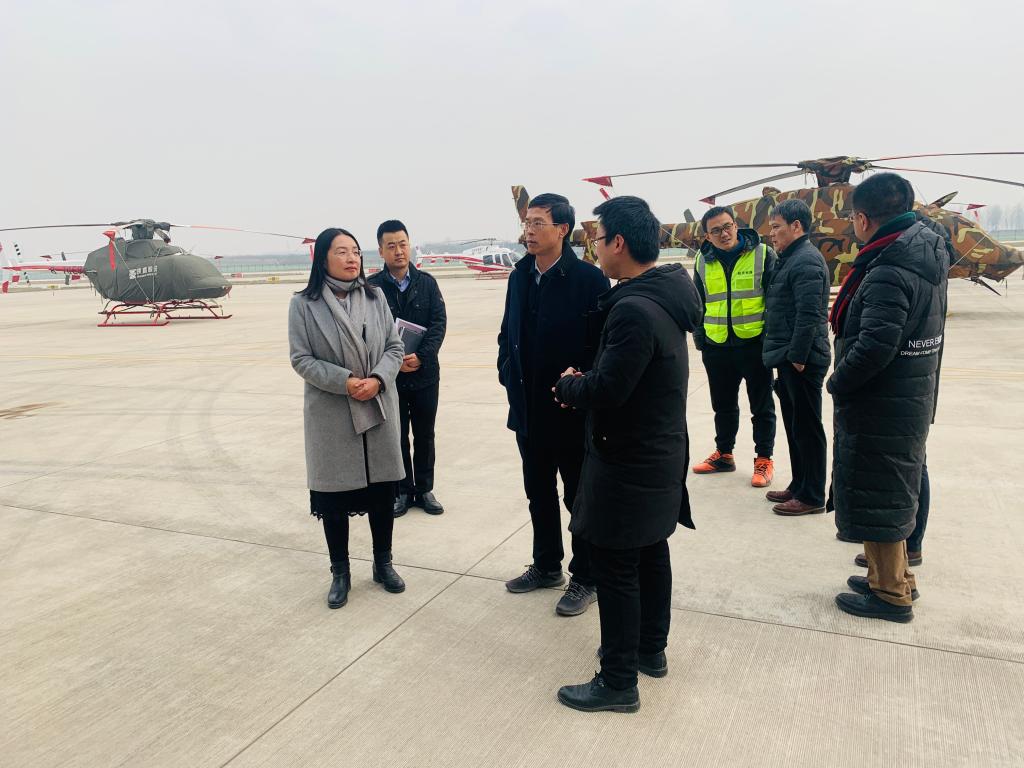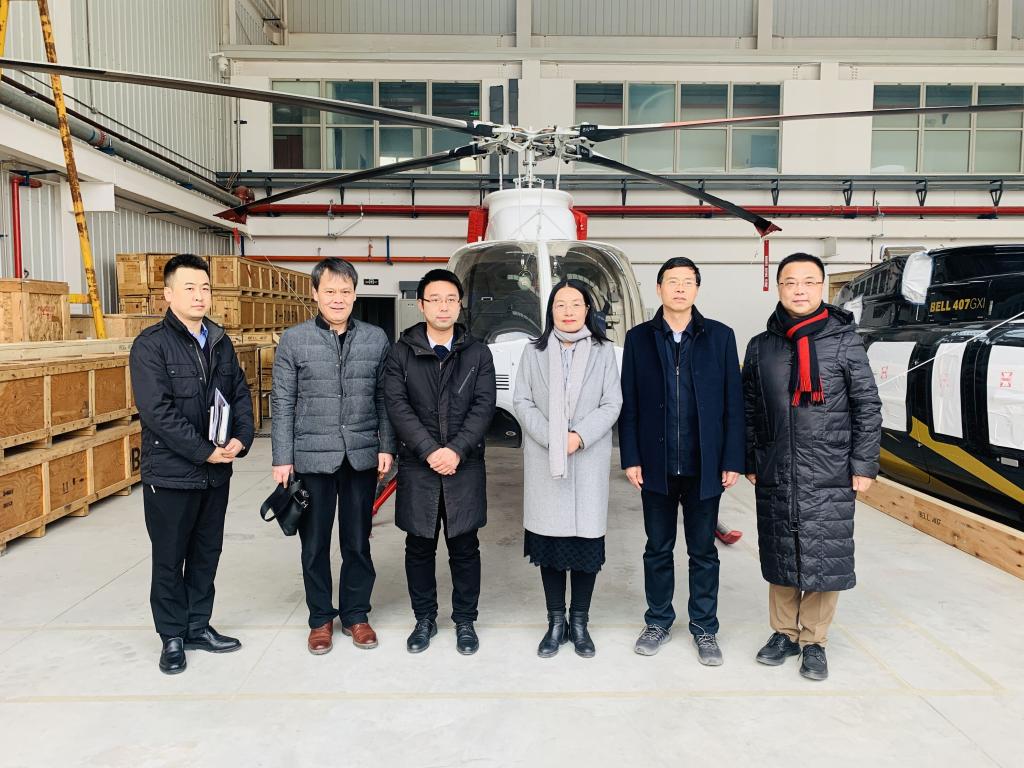 随后,宋文学副校长在孙从笑副局长陪同下,参观了通用机场。饶有兴致的登上直升机了解直升机飞机控制、自主研制等相关问题。