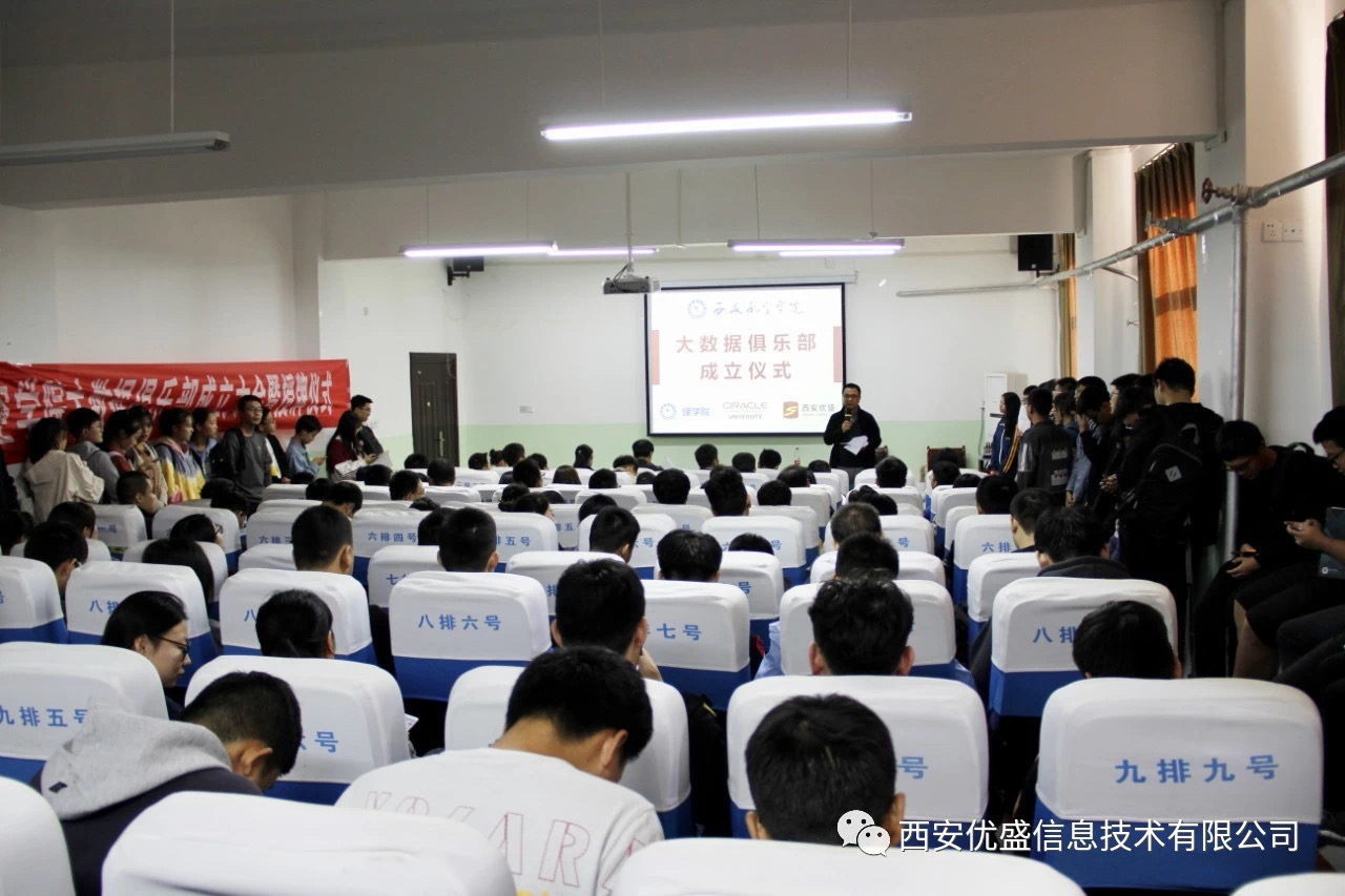 2019年10月17号下午4点,ac米兰官方网站在北楼447举行大数据俱乐部成立大会暨授牌仪式。参加会议的有ac米兰官方网站院长岳忠玉、副院长丁琦、计算机学院副院长任静、信息与计算工程专业负责人张惠玲、ac米兰官方网站校企合作委员会主任曹建波、OracleUniversity(中国)北方区经理王云清、西安优盛信息技术有限公司总经理雷建军、副总经理龚浩杰、培训认证主管王欢以及信息与计算工程专业的教师和学生。